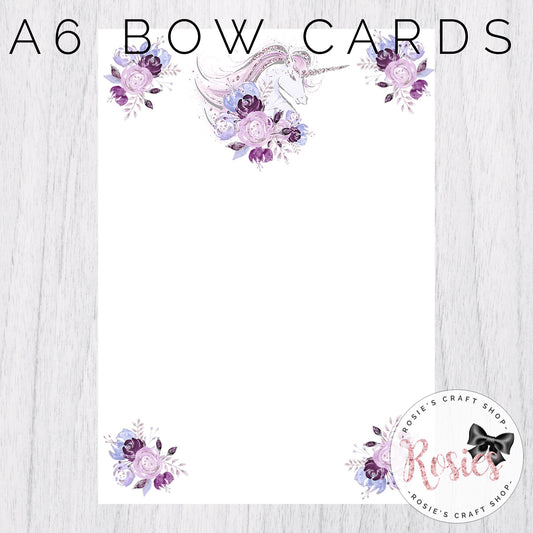 Purple Unicorn Hair Bow Printed Display Cards A6 - 25 Pack