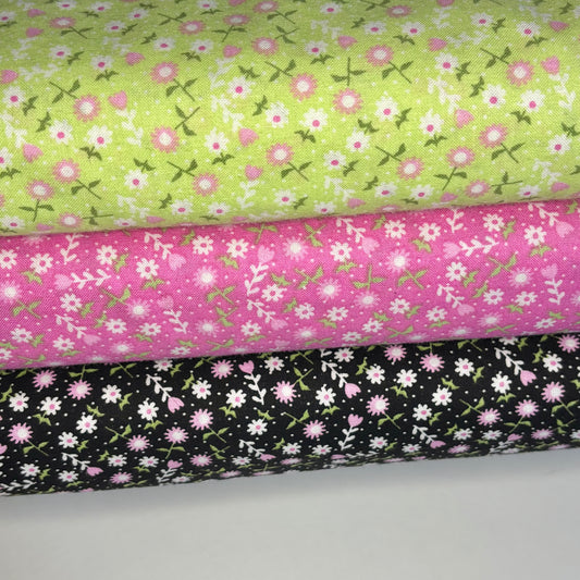Multi-Coloured Daisies on Pink - Fairy Garden - Riley Blake Cotton Fabric ✂️ £8 pm *SALE*