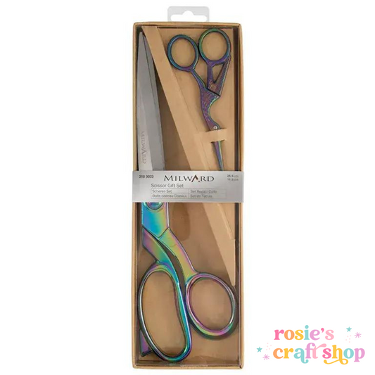 Milward Scissors Gift Set | 20cm & 9.5 cm | Rainbow Chrome | Dressmaking & Embroidery