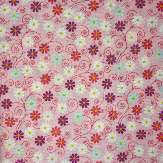 Multi-Coloured Daisies on Pink - Fairy Garden - Riley Blake Cotton Fabric ✂️ £8 pm *SALE*