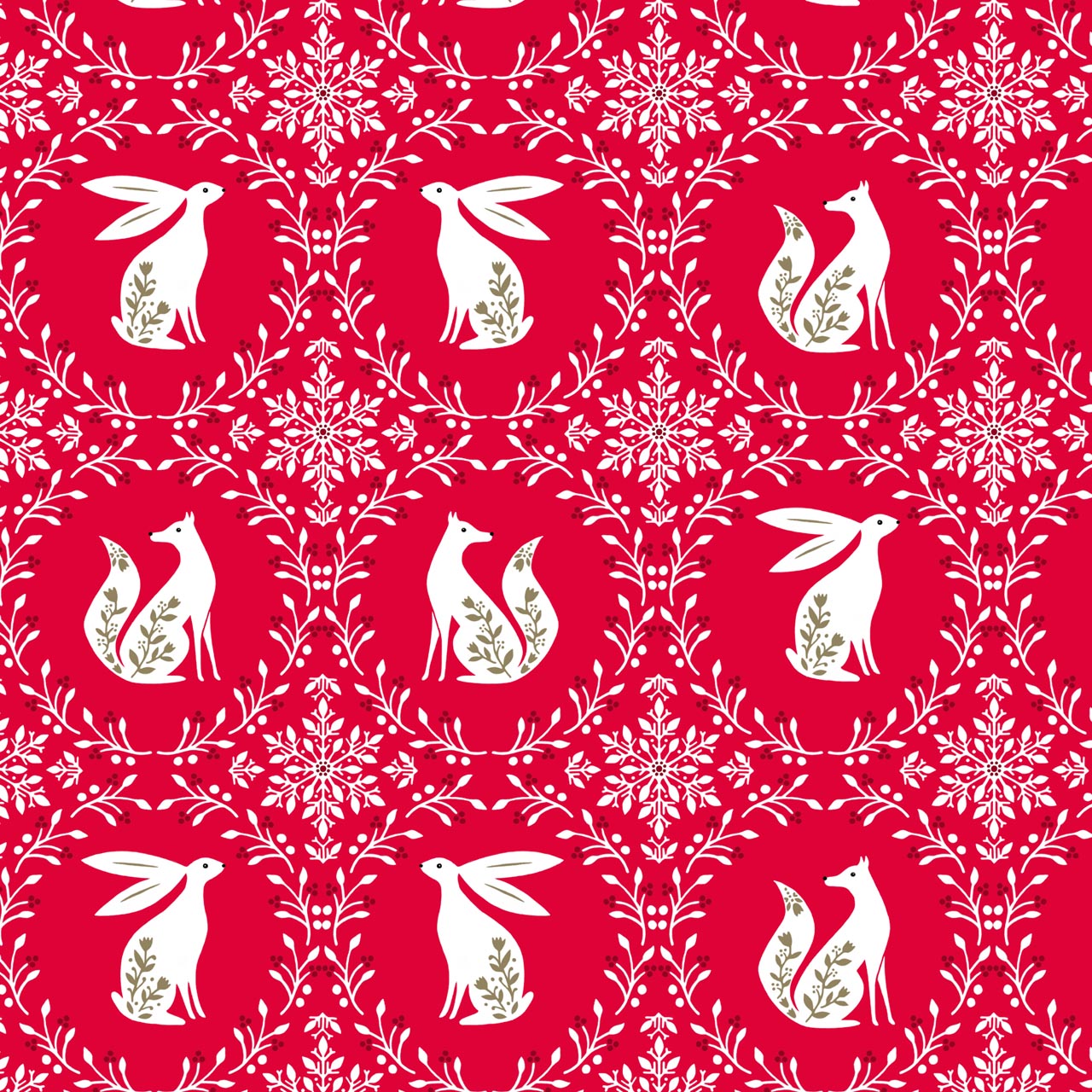 Animal Wreaths Metallic Red - Starlit Hollow - Dashwood Studio Cotton Fabric ✂️ £13 pm