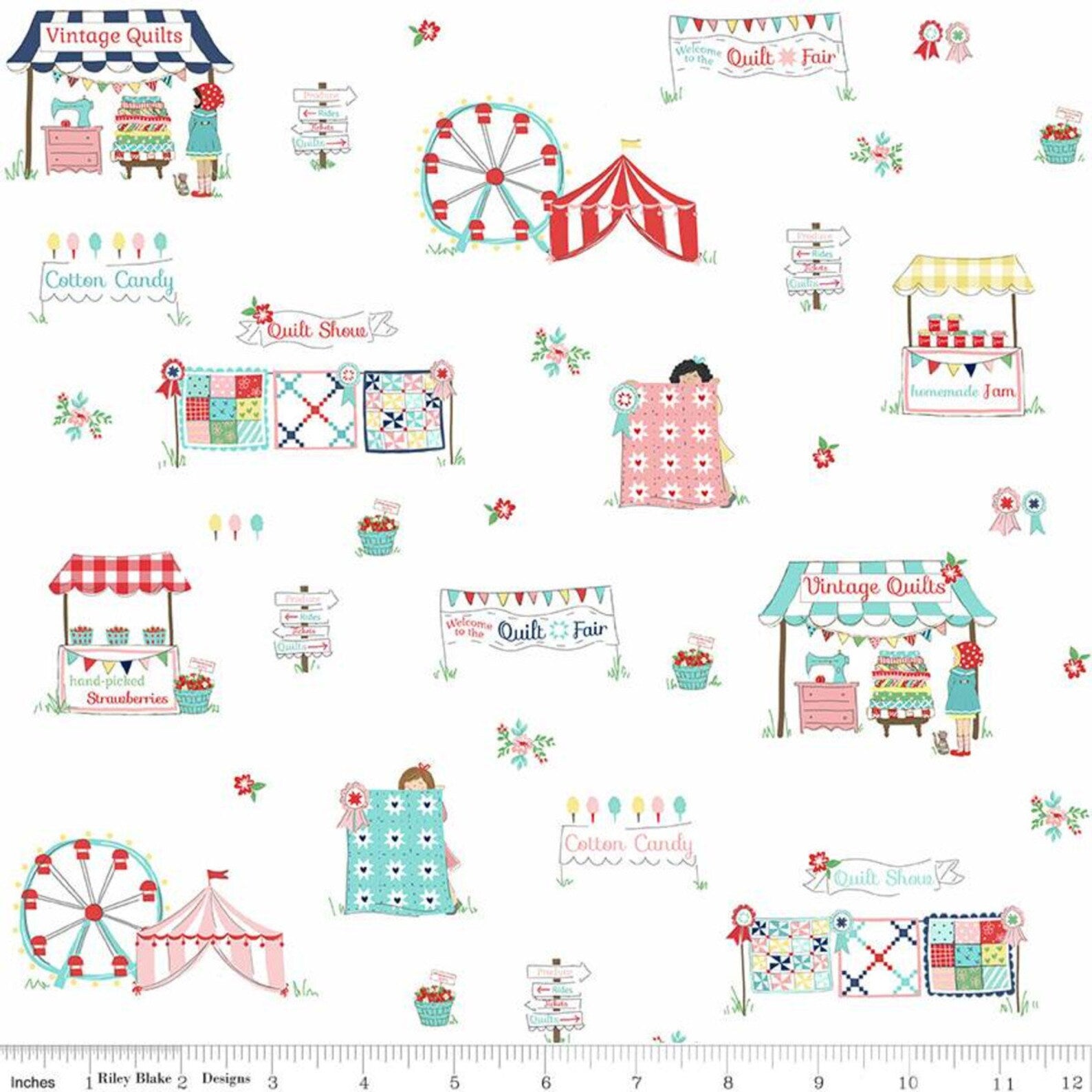 Quilt Fair Tents Main on White - Quilt Fair - Riley Blake Cotton Fabric ✂️ £10 pm *SALE*