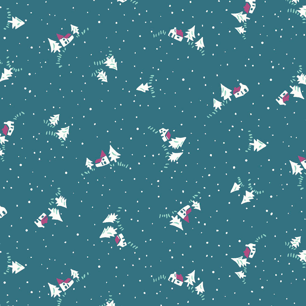 Teal Christmas Cottage - A Woodland Christmas - Liberty Cotton Fabric ✂️ £11 pm ☆